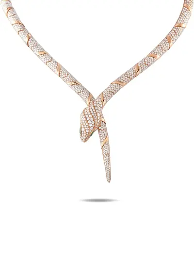 pink 18K rose gold diamonds with 22.93 carats emeralds snake design pave setting Normal everyday use and external agents may reduce the lustre of gemstones and gold surfaces. To maintain, use specific, non-abrasive products specially meant for cleaning jewellery. Condition: EXCELLENT. This previously owned item is in near-perfect condition with no signs of damage or use.