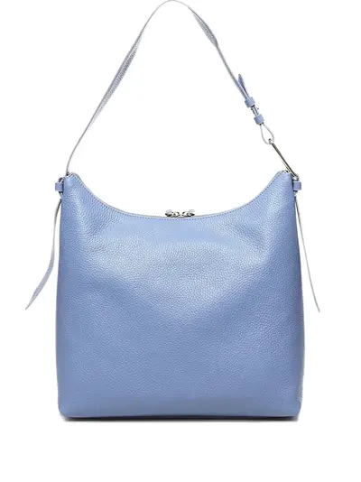 light blue pebble leather zip fastening single shoulder strap adjustable strap gold-tone hardware