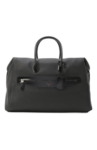 Для изготовления сумки использовали фактурную матовую кожу, а для отделки – гладкую блестящую с фирменной патиной, созданной в технике velatura. Спереди и внутри аксессуар с двумя ручками и съемным ремнем дополнили карманами с молниями. В комплекте – брелок с декоративным ключом.