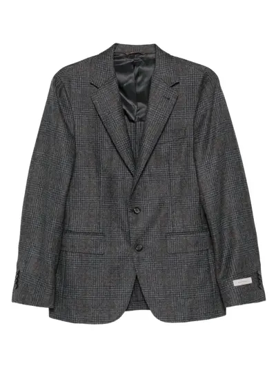 grey checked pattern two button fastening notched lapel flap pockets long sleeves