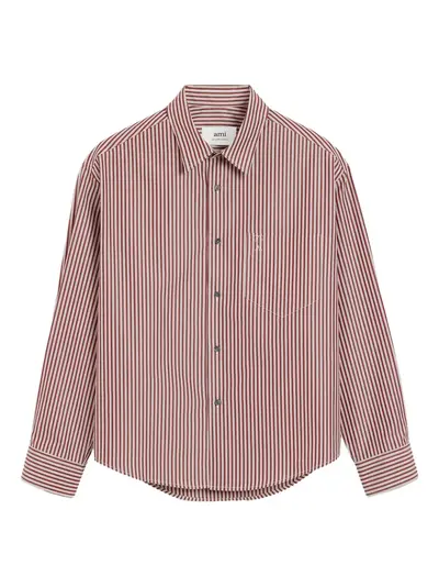 Ami Paris Ami De Coeur embossed striped cotton boxy shirt 30650575 (lpn30758395)