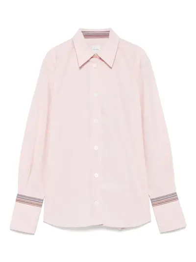 pink cotton long sleeves button fastening collared neck striped cuffs