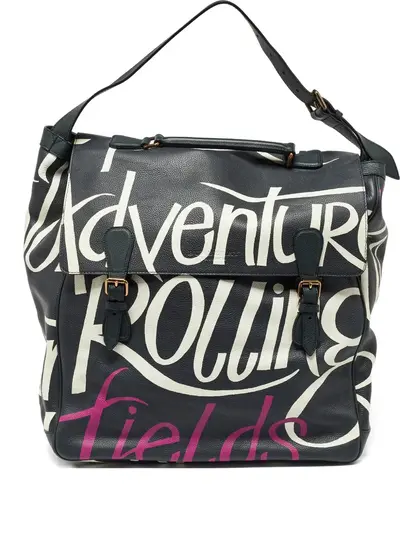 dark green leather single top handle detachable adjustable shoulder strap main compartment all-over logo print front buckle fastening Condition: GOOD. This previously owned and used item is in good condition with minimal signs of use. This may include fading of material or plating and scratches.
