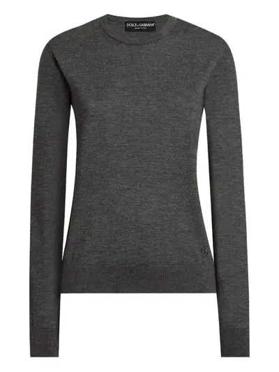 grey crew neck long sleeves relaxed fit embroidered logo straight hem