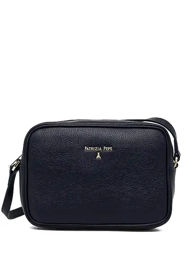 blue gold-tone logo lettering zip fastening adjustable shoulder strap
