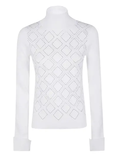 white rhombus pattern high neck long sleeves ribbed cuffs crystal embellishment