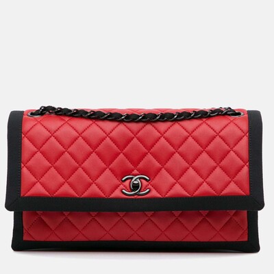 Chanel Quilted Two Tone Flap Red Lambskin and Grosgrain Leather Shoulder Bag 1194659 - 1
