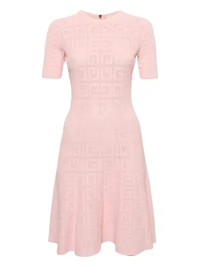 light pink jersey knit A-line skirt short sleeves geometric monogram pattern rear zip fastening