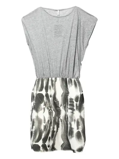 2024 grey gathered bodice feather-print skirt wool-silk blend Condition: GOOD. This previously owned and used item is in good condition with minimal signs of use. This may include fading of material or plating and scratches.