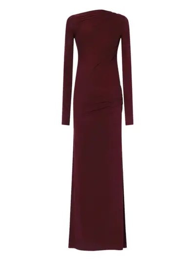 burgundy ruched detailing open back long sleeves side slit
