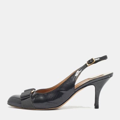 Salvatore Ferragamo keeps things graceful with this grey slingback pair, finished with a signature Vara bow and patent shine for understated charm.