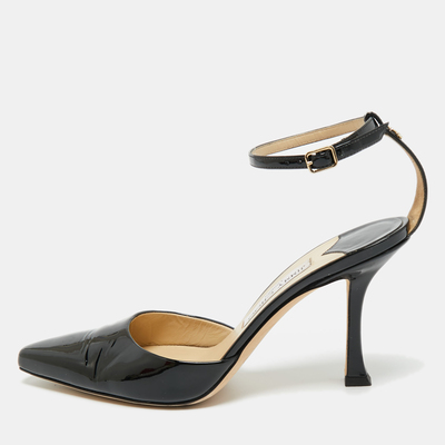 Jimmy Choo Black Patent Leather Saeda Mary Jane Pumps Size 38.5 1196992 (чёрный, lpn30777382)