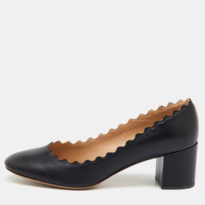 Chloe Black Leather Lauren Scallop Trim Block Heel Pumps Size 36.5 1195254 (чёрный, lpn30777882)