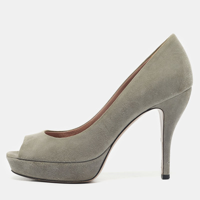 Gucci Grey Suede Platform Peep Toe Pumps Size 36 1195162 (lpn30777892)