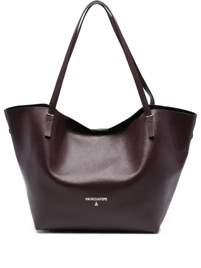 purple red calf leather internal clutch bag top handles subtle logo unstructured shape