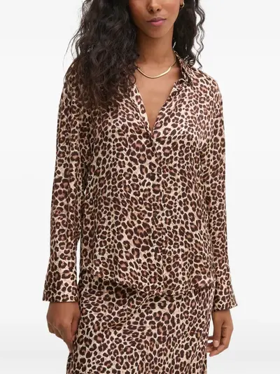 beige leopard print button fastening long sleeves