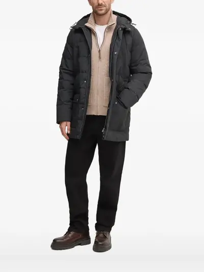 black quilted design hooded neckline snap-button and zip fastening welt pockets long sleeves