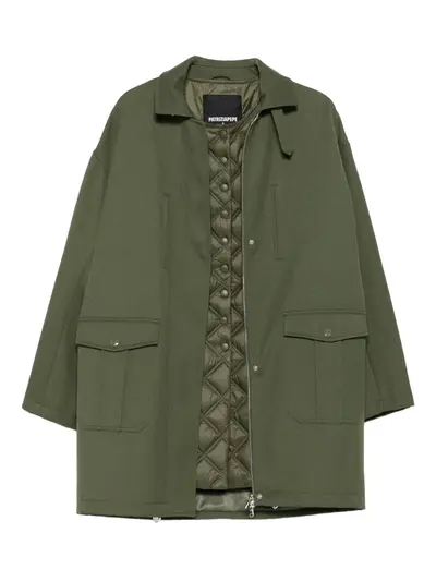 ivy green quilted vest two front flap pockets concealed zip fastening collared neck long sleeves silver-tone logo plaque