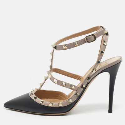 Valentino Black/Beige Leather Rockstud Caged Pumps Size 40 1197393 - 1