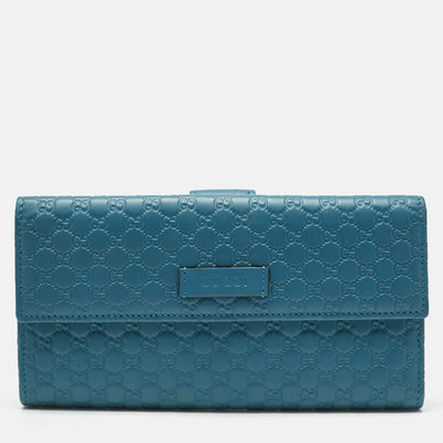 Rendered in luxurious teal blue Microguccissima leather, this Gucci continental wallet exudes elegance with its compact flap design. The finely embossed pattern, streamlined interior, and timeless silhouette make it a perfect harmony of fashion and function.