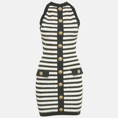 Balmain Black/ White Striped Rib Knit Mini Bodycon Dress S 1196108 - 1