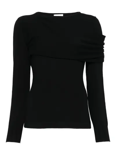black wool-cashmere blend draped neckline long sleeves close-fitting round neck