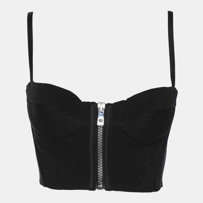 Sleek and minimal, this cropped top from Versace is cut from crepe and features adjustable straps and a front zipper. A simple statement piece to wear with suits or with your favorite jeans.