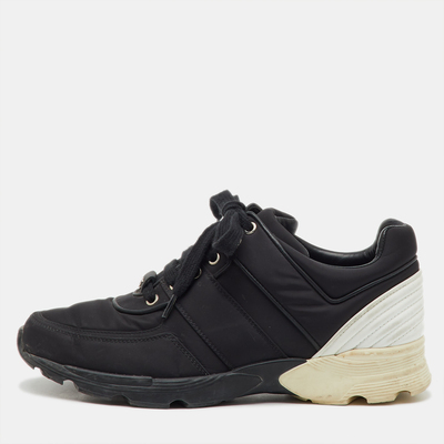 Chanel Black/White Nylon and Leather CC Low Top Sneakers Size 39.5 1198020 - 1