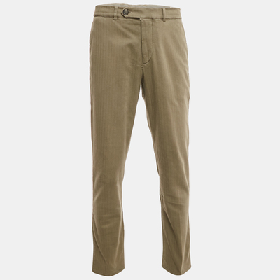 Brunello Cucinelli Sage Green Herringbone Cotton Traditional Fit Trousers M 1194262 - 1 small