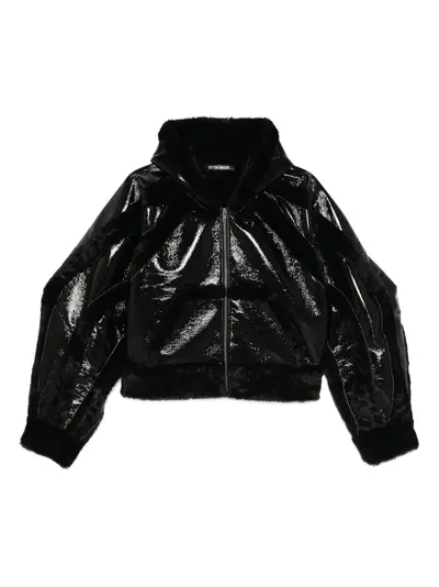 black faux fur trim zip front fastening hooded neckline long sleeves