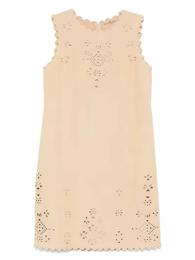 ecru concealed rear zip fastening floral motif scallop edge sleeveless
