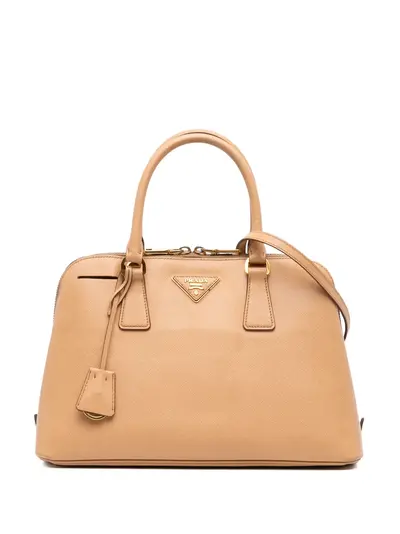 saffiano leather body rolled leather handles detachable and adjustable flat leather shoulder strap top zip closure interior zip and slip pockets brown Inclusions: charm. Condition: GOOD. This previously owned and used item is in good condition with minimal signs of use. This may include fading of material or plating and scratches. Declared Damages: Practical Attachment Feature(s) Moderate Rust/Tarnish. Please refer to the photos on this product page for a detailed view of the item, including any damages declared.
