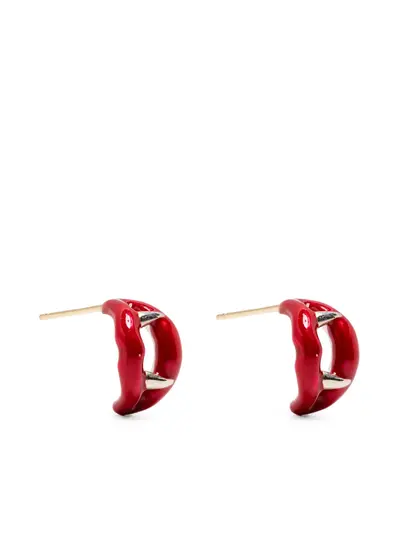 sterling silver red enamel coating spike embellishment curved shape post fastening This is a single earring.