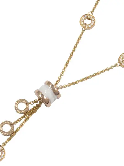 2010s 18kt rose gold polished finish rolo chain ceramic pendant pavé-set white diamonds engraved logo lobster-claw fastening Normal everyday use and external agents may reduce the lustre of gemstones and gold surfaces. To maintain, use specific, non-abrasive products specially meant for cleaning jewellery. Condition: EXCELLENT. This previously owned item is in near-perfect condition with no signs of damage or use.