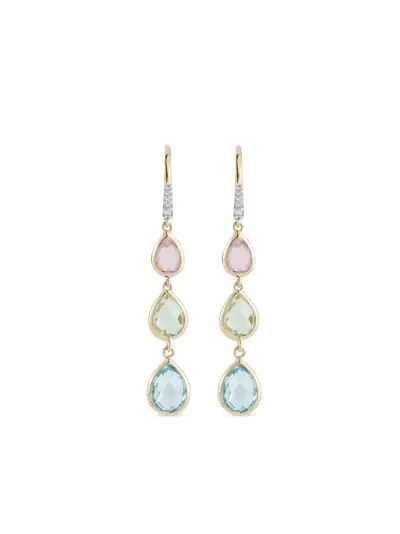 gold 14K yellow gold 1.40 carat green-amethyst 0.072 carat white-diamond 0.74 carat pink-topaz 2.50 blue-topaz pavé-set gemstones pear-cut gemstones hook fastening Normal everyday use and external agents may reduce the lustre of gemstones and gold surfaces. To maintain, use specific, non-abrasive products specially meant for cleaning jewellery.