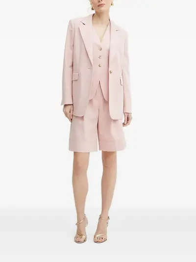 pink notched lapel single button fastening flap pockets straight hem structured shoulders