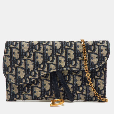 Dior Navy Blue Oblique Canvas and Leather Saddle Wallet On Chain 1198198 (lpn30806376)