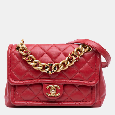 Bold allure radiates from the Chanel Red Small Quilted Lambskin Chain Link Flap Bag, a masterpiece of refined craftsmanship and timeless design. This exclusive piece elevates any ensemble with its vibrant hue and iconic elegance, perfect for the discerning collector.