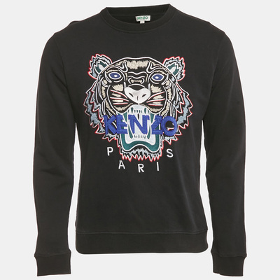 Fusing bold streetwear with iconic branding, this Kenzo sweatshirt features the instantly recognizable tiger embroidery in vivid tones against a black cotton base. With a classic crew neckline and relaxed silhouette, it brings statement energy to casual dressing.