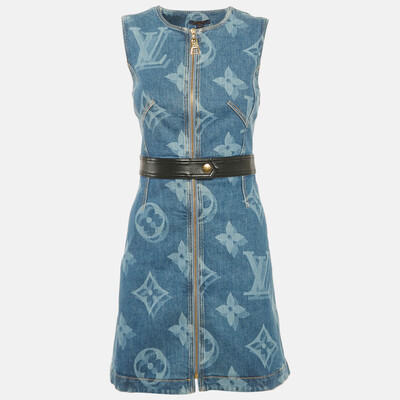 Louis Vuitton Blue Logo Print Denim Mini Dress S 1233751 (голубой, lpn30806782)