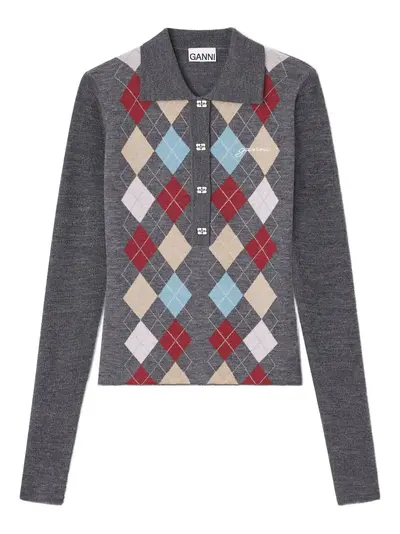 Ganni ribbed polo-neck top 31313675 (lpn30807129)