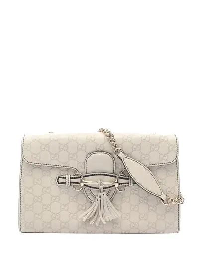 embossed leather body curb chain strap front flap with a slip through closure tassel detail interior slip pockets white Serial Number: 295402 This item has no inclusions. Condition: EXCELLENT. This previously owned item is in near-perfect condition with no signs of damage or use. Due to the exclusivity of this item and its limited availability, processing and delivery might take longer than usual. Please refer to the photos on this product page for a detailed view of the item, including any damages declared.