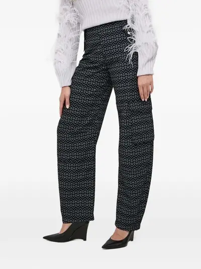 black geometric print high waist side flap pockets