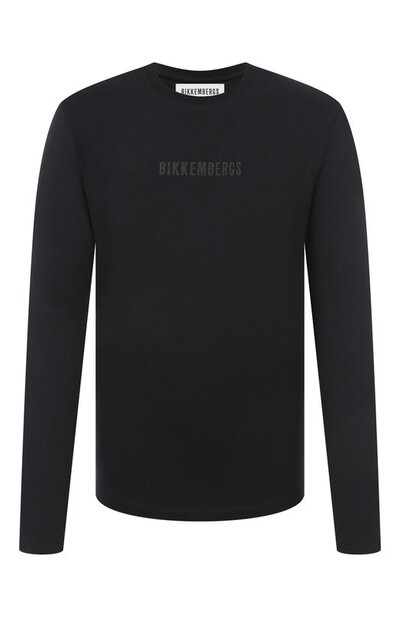 Для пошива лонгслива прямого кроя использовали эластичное хлопковое джерси. Спереди модель с круглой горловиной украсили рельефным логотипом бренда.