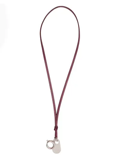dark-red leather cord knotted fastening silver-tone metal spring-ring