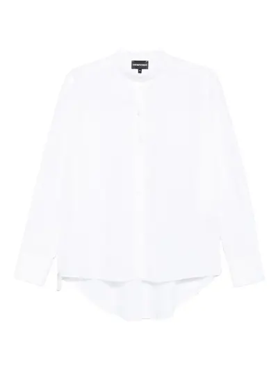 white curved hem button front long sleeves mandarin collar cotton material