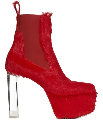 red platform sole calf-hair upper elastic side-panel transparent block-heel
