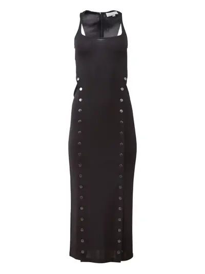 black U-neckline side cut-outs button embellishments sleeveless midi length