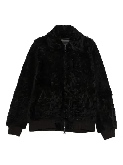 black lamb fur zip fastening ribbed hem and cuffs long sleeves