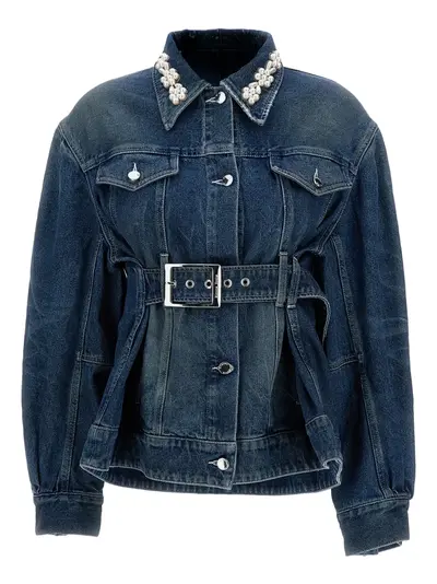 Simone Rocha pearl-embellished belted denim jacket 31767442 (lpn30815977)
